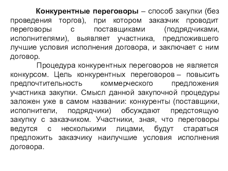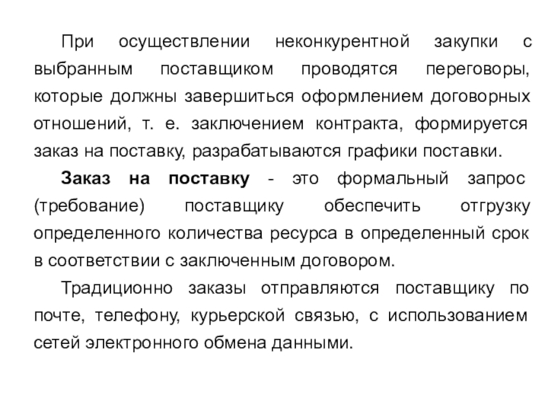 Слайд 10 При осуществлении неконкурентной закупки с выбранным поставщиком проводятся переговоры, которые