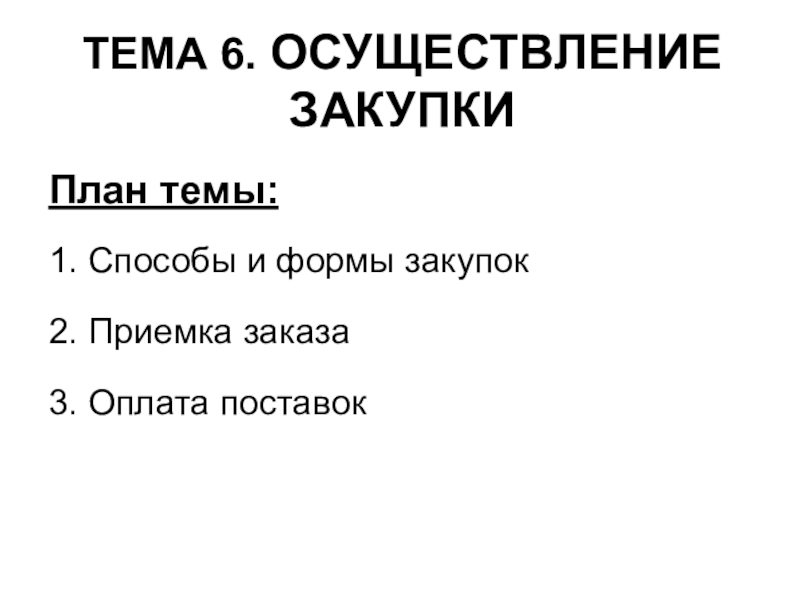 Слайд 2ТЕМА 6. ОСУЩЕСТВЛЕНИЕ ЗАКУПКИ