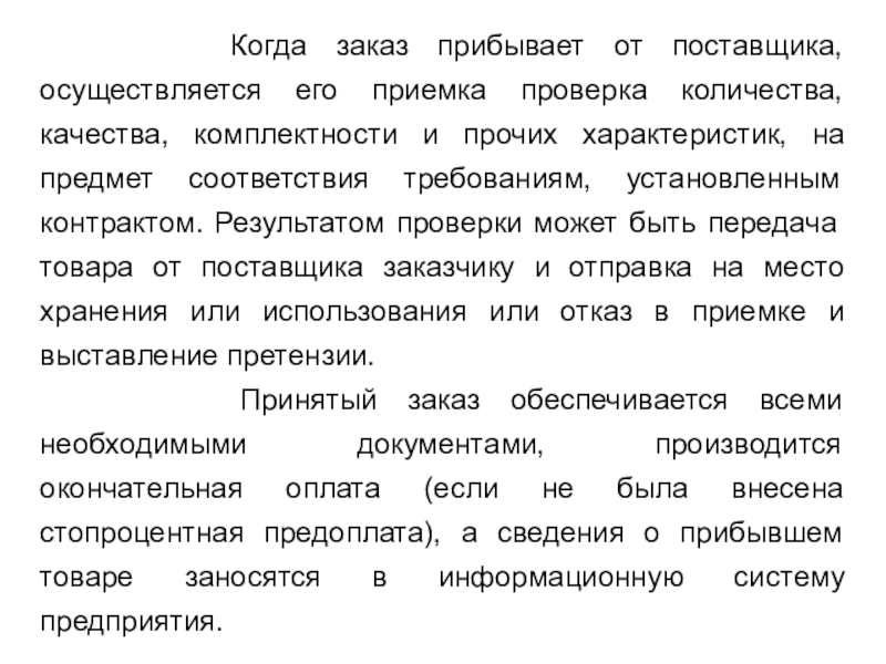 Слайд 15 Когда заказ прибывает от поставщика, осуществляется