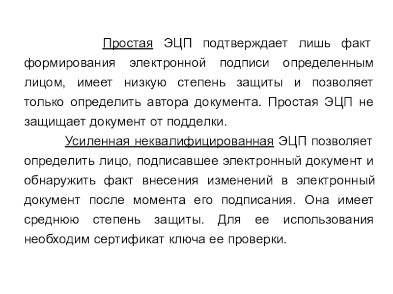 Слайд 63 Простая ЭЦП подтверждает лишь факт формирования электронной