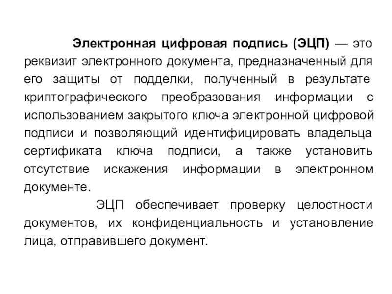 Слайд 61 Электронная цифровая подпись (ЭЦП) — это реквизит