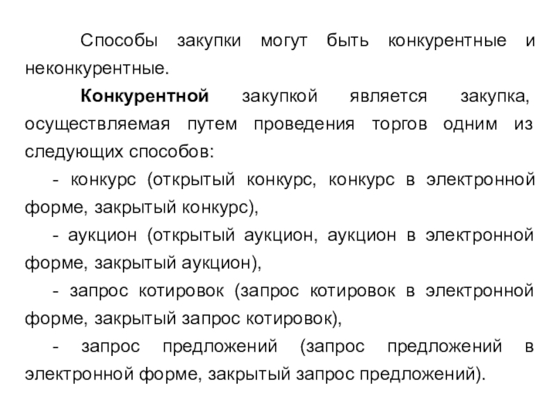 Слайд 8 Способы закупки могут быть конкурентные и неконкурентные.
