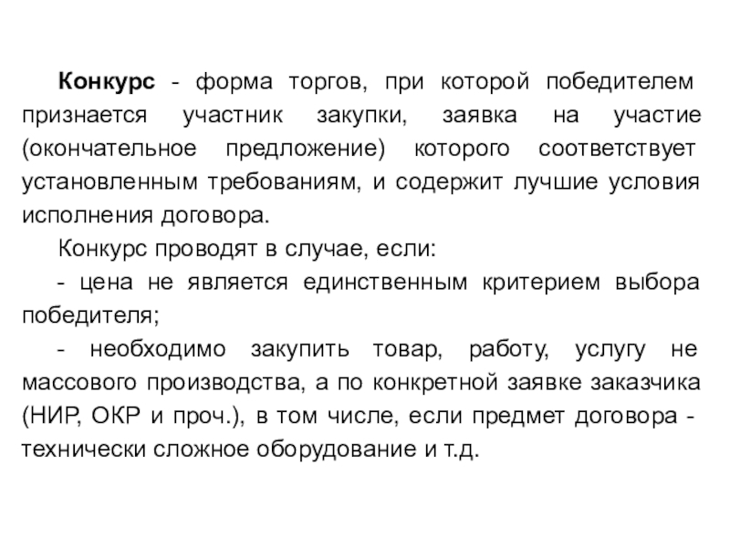 конкурс (открытый конкурс, конкурс в электронной форме, закрытый конкурс),