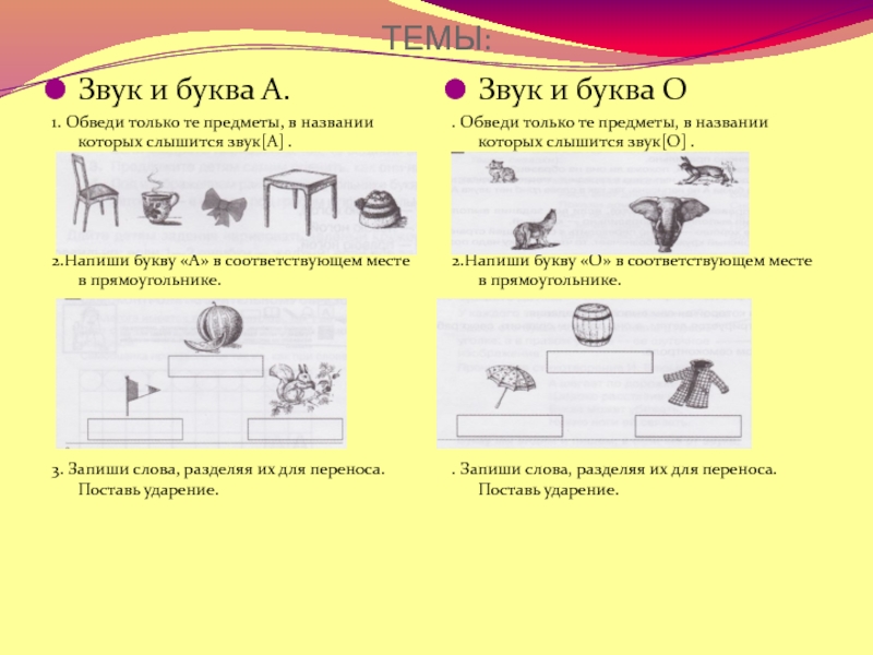. Обведи только те предметы, в названии которых слышится звук[О] .