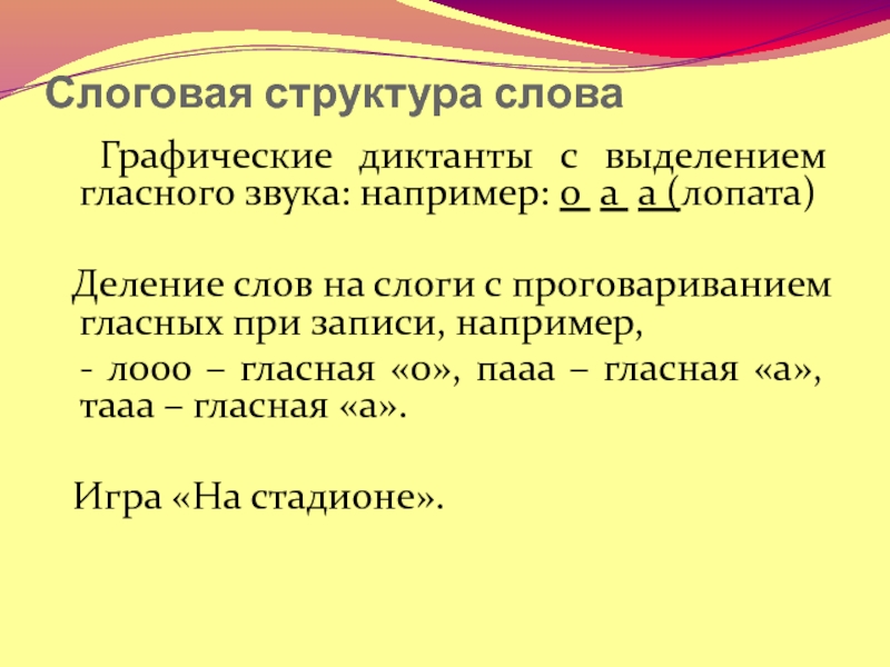 3.Запиши слова, состоящие из двух и трёх слогов гласными буквами.