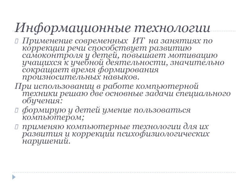 Применение современных ИТ на занятиях по коррекции речи способствует