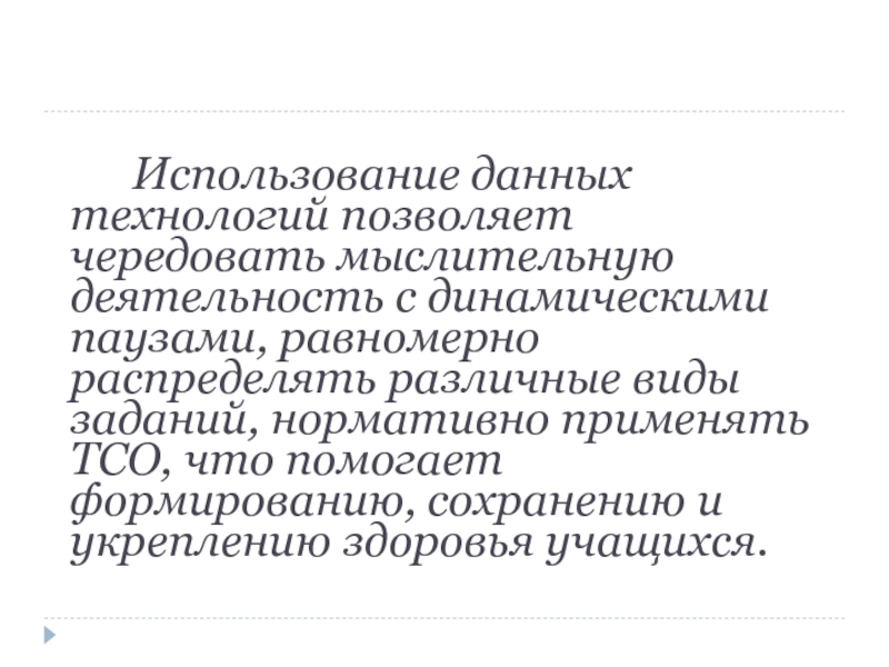 Слайд 27 Использование данных технологий позволяет чередовать мыслительную деятельность с динамическими паузами,