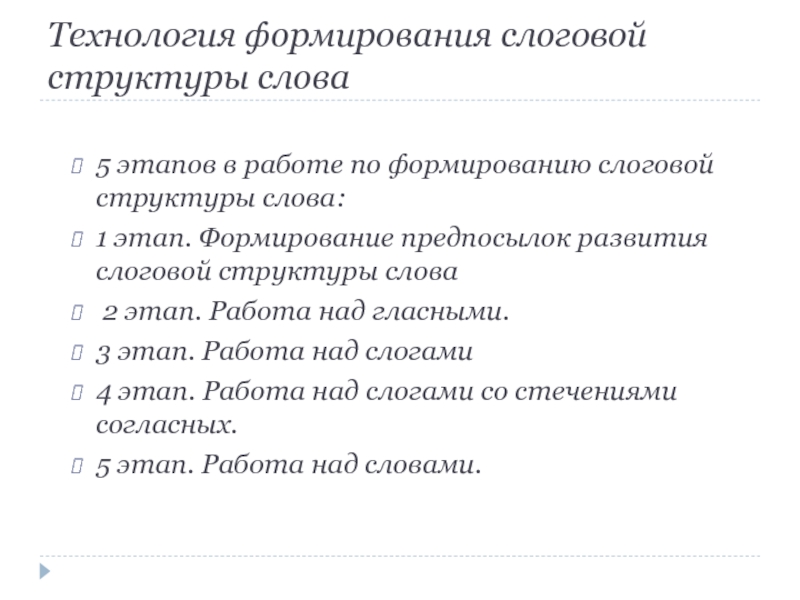 1 этап. Формирование предпосылок развития слоговой структуры слова