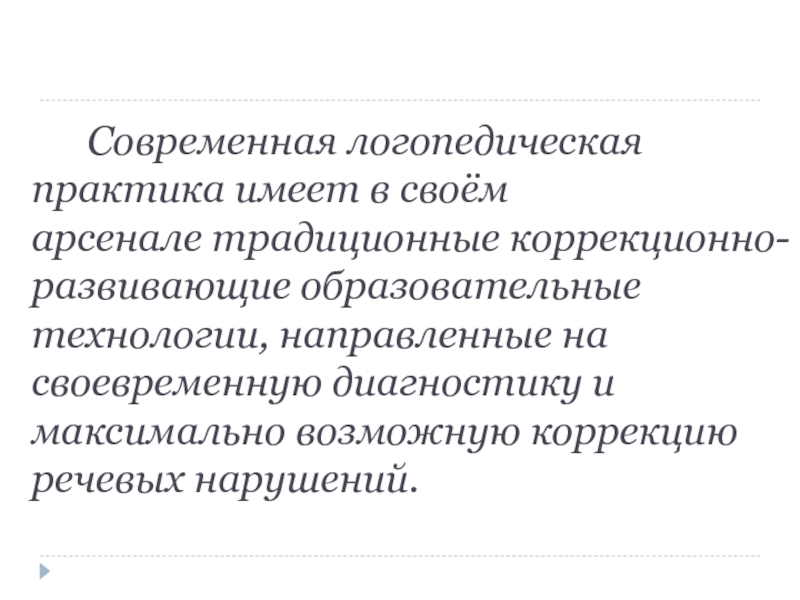 Слайд 2 Современная логопедическая практика имеет в своём арсенале традиционные коррекционно-развивающие образовательные технологии,