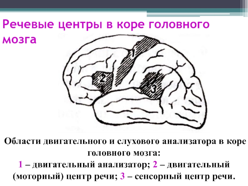 двигательный (моторный) центр речи; 3 – сенсорный центр речи.