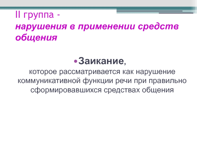 Заикание, которое рассматривается как нарушение коммуникативной функции речи при правильно сформировавшихся средствах общения