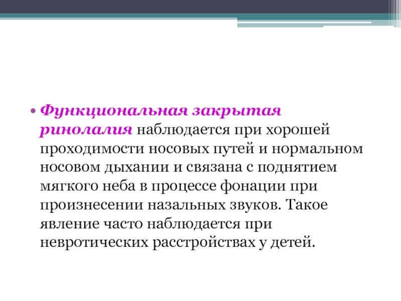 Функциональная открытая ринолалия отсутствуют органические изменения твердого и мягкого