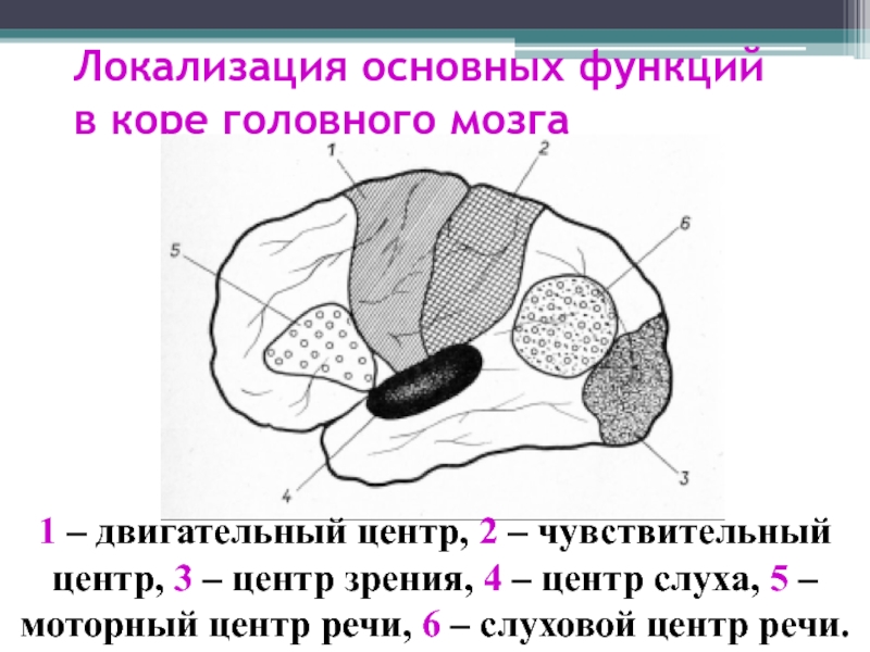 центр слуха, 5 – моторный центр речи, 6 – слуховой центр речи.