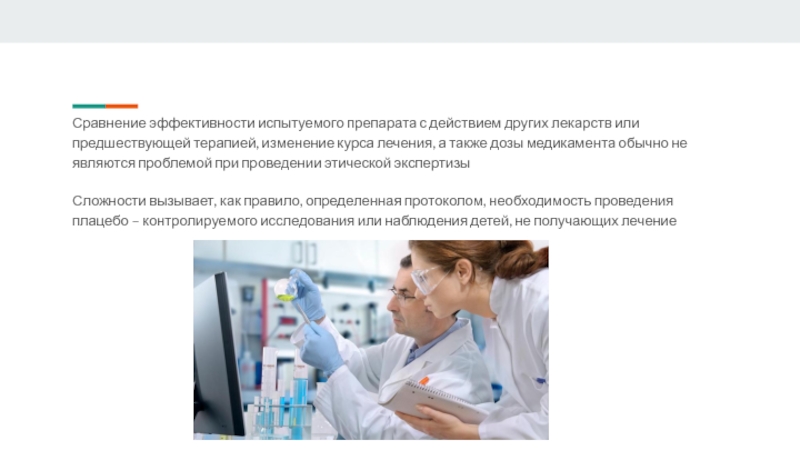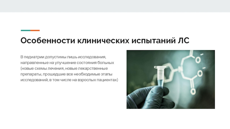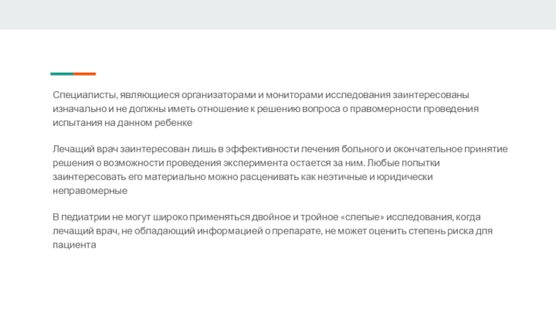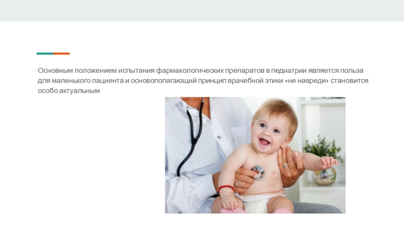 Слайд 24Основным положением испытания фармакологических препаратов в педиатрии является польза для