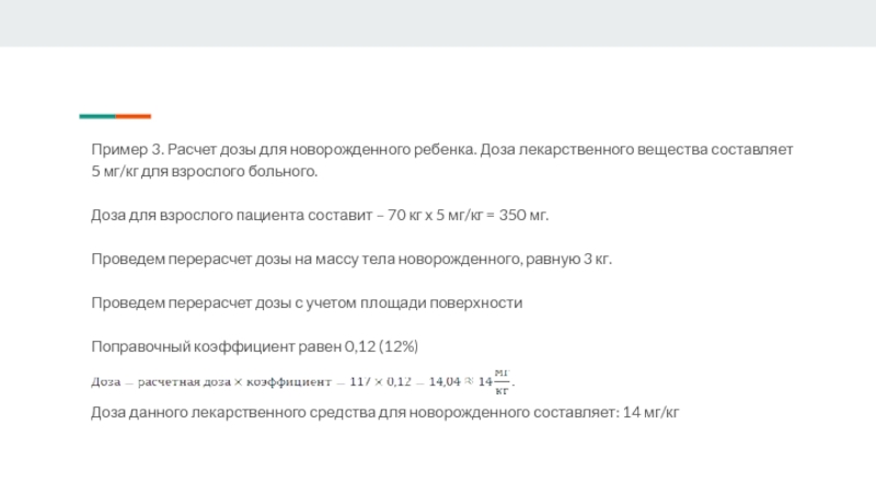 Слайд 29Пример 3. Расчет дозы для новорожденного ребенка. Доза лекарственного вещества