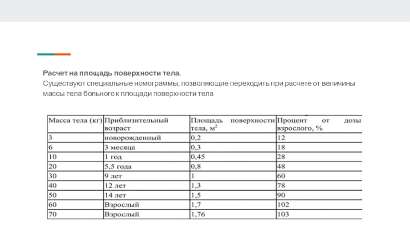 Слайд 26Расчет дозы детям исходя из массы тела осуществляется по следующей