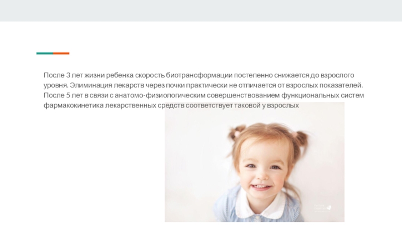 Слайд 16После 3 лет жизни ребенка скорость биотрансформации постепенно снижается до
