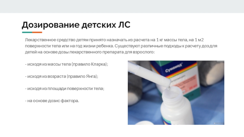 на год жизни ребенка. Существуют различные подходы к расчету доз для детей на основе дозы лекарственного препарата для взрослого: