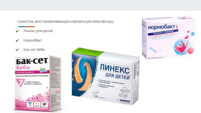Слайд 44Средства, восстанавливающие нормальную микрофлору: