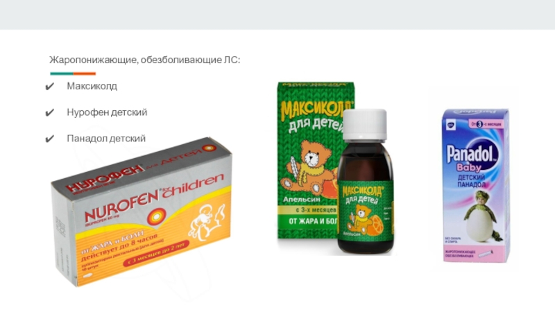 Слайд 45Жаропонижающие, обезболивающие ЛС: