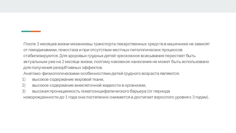 Слайд 14После 3 месяцев жизни механизмы транспорта лекарственных средств в кишечнике