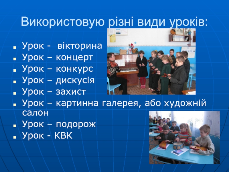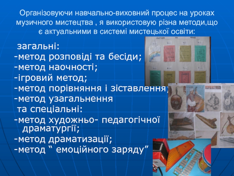 Слайд 10Організовуючи навчально-виховний процес на уроках музичного мистецтва , я використовую