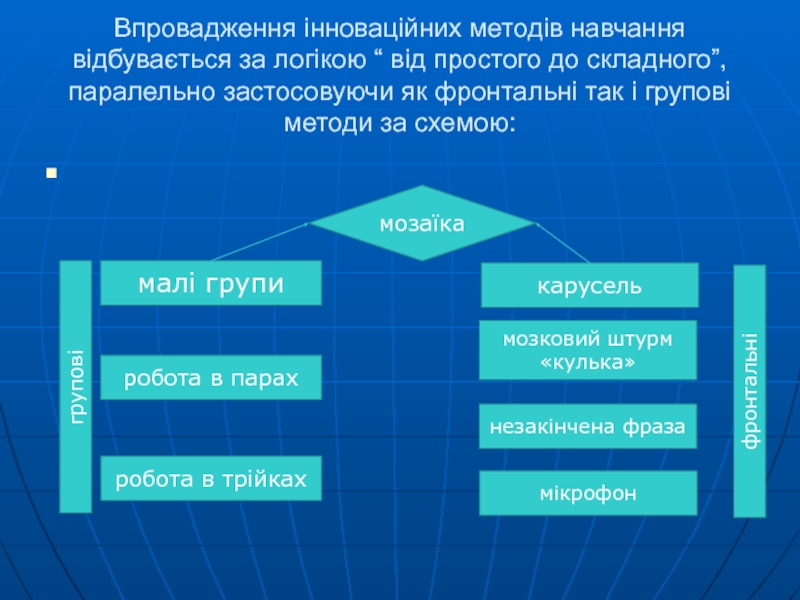 до складного”, паралельно застосовуючи як фронтальні так і групові методи