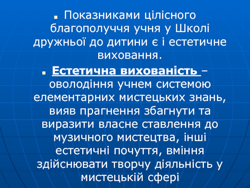 Естетична вихованість – оволодіння учнем системою елементарних мистецьких
