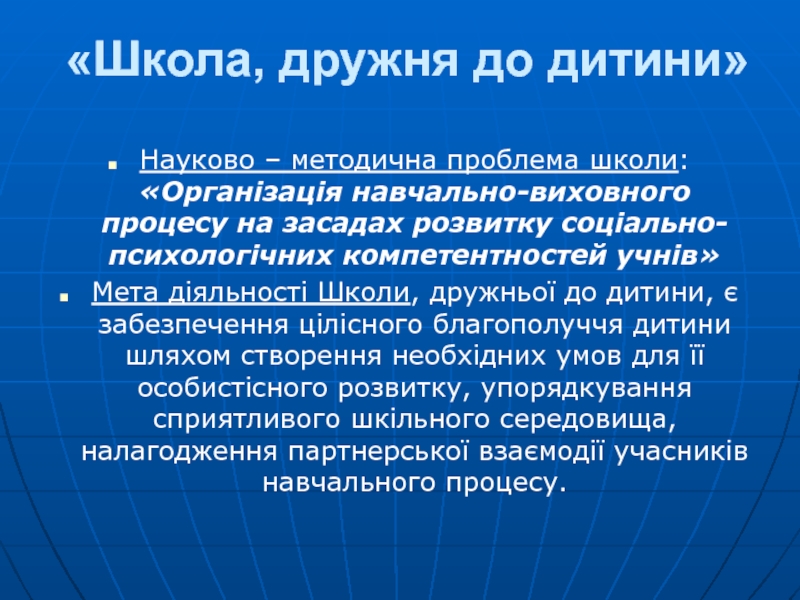 до дитини, є забезпечення цілісного благополуччя дитини шляхом створення необхідних умов для її особистісного розвитку, упорядкування сприятливого шкільного середовища, налагодження партнерської взаємодії учасників навчального процесу.