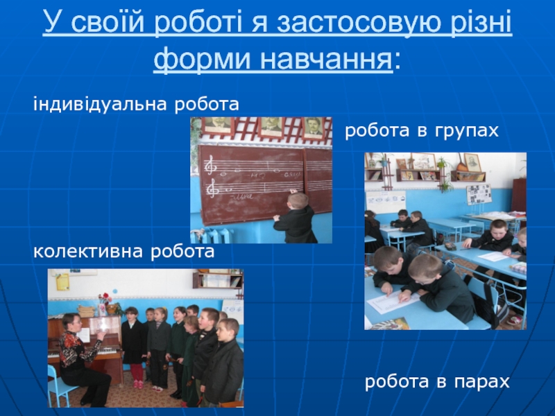 Слайд 12У своїй роботі я застосовую різні форми навчання: