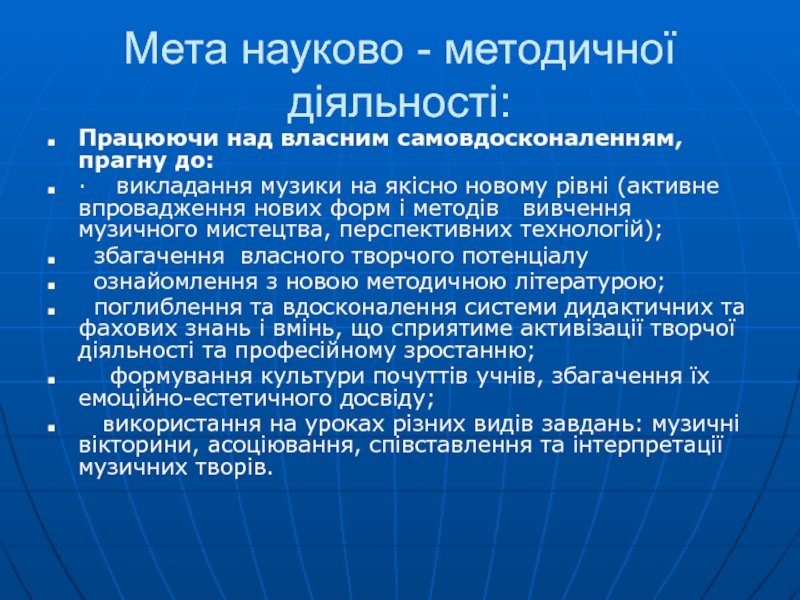 поглиблення та вдосконалення системи дидактичних та фахових знань і вмінь, що сприятиме активізації творчої діяльності та професійному зростанню;