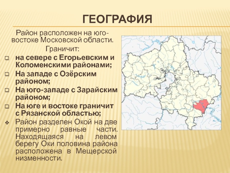 Голубой цвет отражает реку Оку, на берегах которой расположен район. Голубой цвет в геральдике символизирует мир, чистоту неба, истину, возвышенные устремления и честь.
