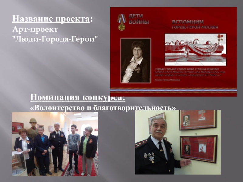 Номинация конкурса:«Волонтерство и благотворительность»Название проекта: Арт-проект "Люди-Города-Герои"