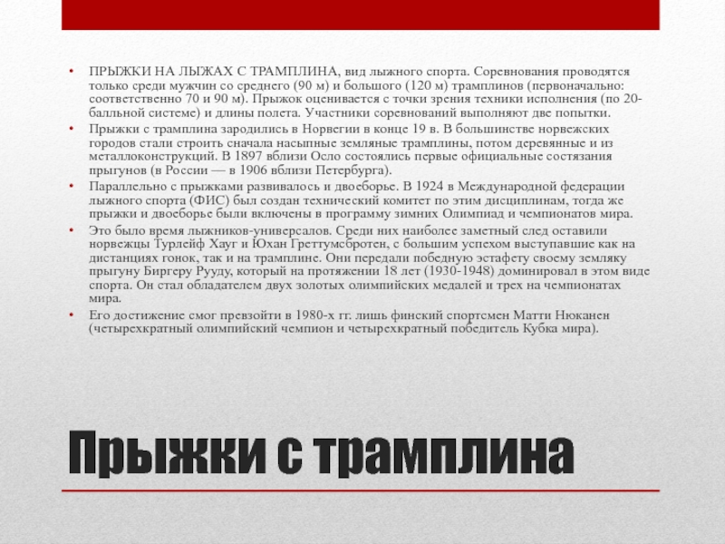 ПРЫЖКИ НА ЛЫЖАХ С ТРАМПЛИНА, вид лыжного спорта.