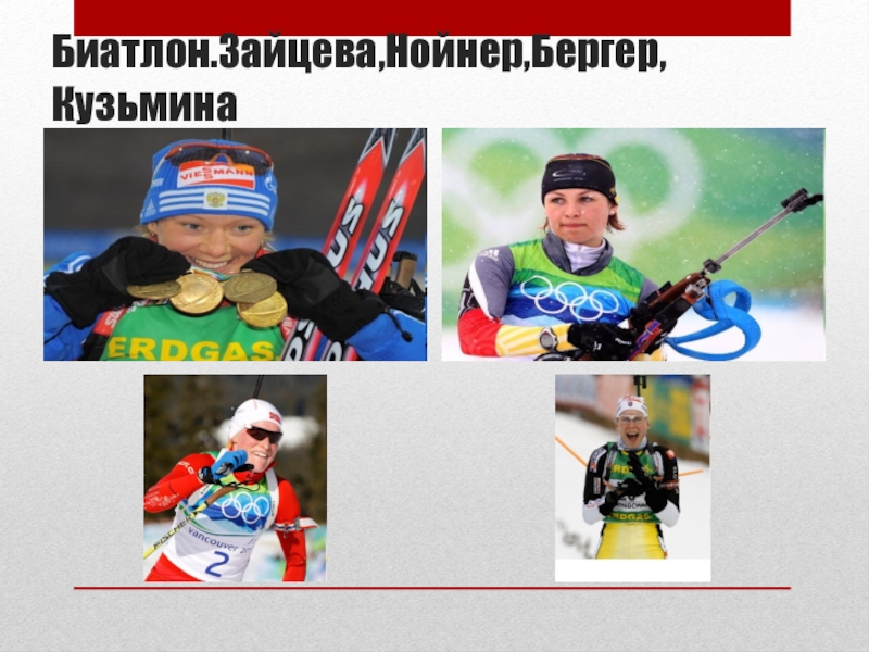 Слайд 3Биатлон.Зайцева,Нойнер,Бергер,Кузьмина