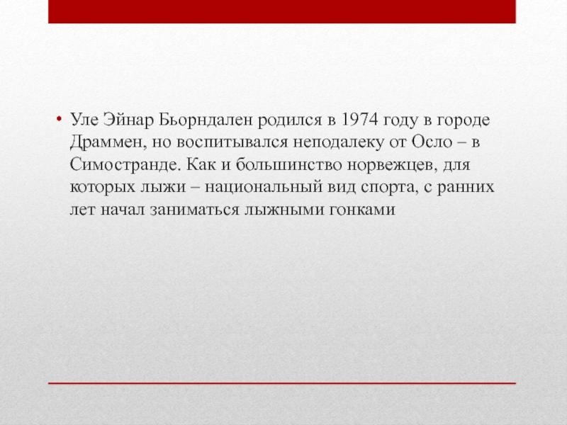 Слайд 6Уле Эйнар Бьорндален родился в 1974 году в городе Драммен,