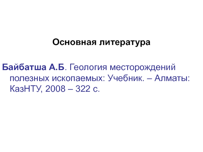 Байбатша А.Б. Геология месторождений полезных ископаемых: Учебник. – Алматы: