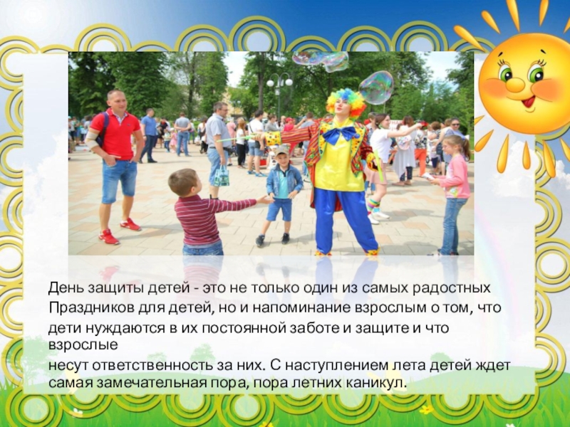 Слайд 2Международный день защиты детей (International Children's Day), отмечаемый в первый