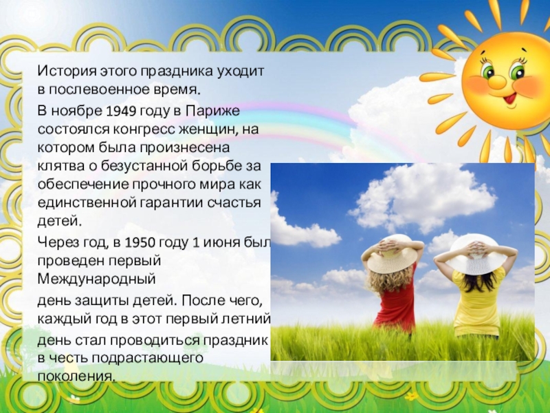 Слайд 3Первый Международный день защиты детей был проведен в 1950 году.
