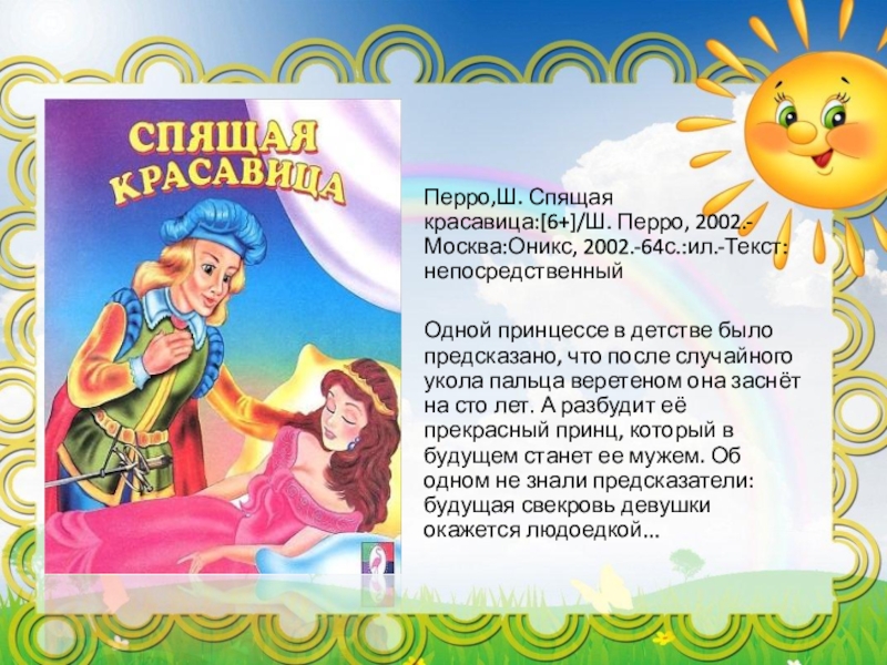 Перро,Ш. Спящая красавица:[6+]/Ш. Перро, 2002.-Москва:Оникс, 2002.-64с.:ил.-Текст:непосредственный