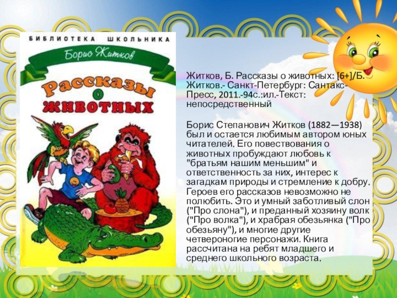 Слайд 17Житков, Б. Рассказы о животных: [6+]/Б.Житков.- Санкт-Петербург: Сантакс-Пресс, 2011.-94с.:ил.-Текст:непосредственный