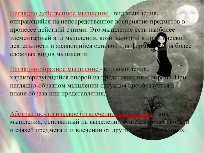 Абстрактно-логическое (отвлеченное) мышление - вид мышления, основанный на выделении существенных свойств и связей предмета и отвлечении от других, несущественных.