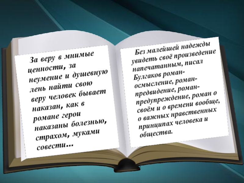 Одной из главных философских проблем романа является проблема взаимоотношения добра и зла. Эта тема всегда занимала ведущее место в русской философии и литературе.