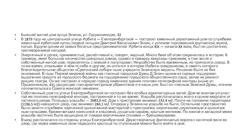 Слайд 15Бывший жилой дом купца Зязина, ул. Орджоникидзе, 32