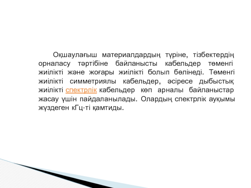 Слайд 1Магистральды төменгі жиілікті симметриялы кабельдер