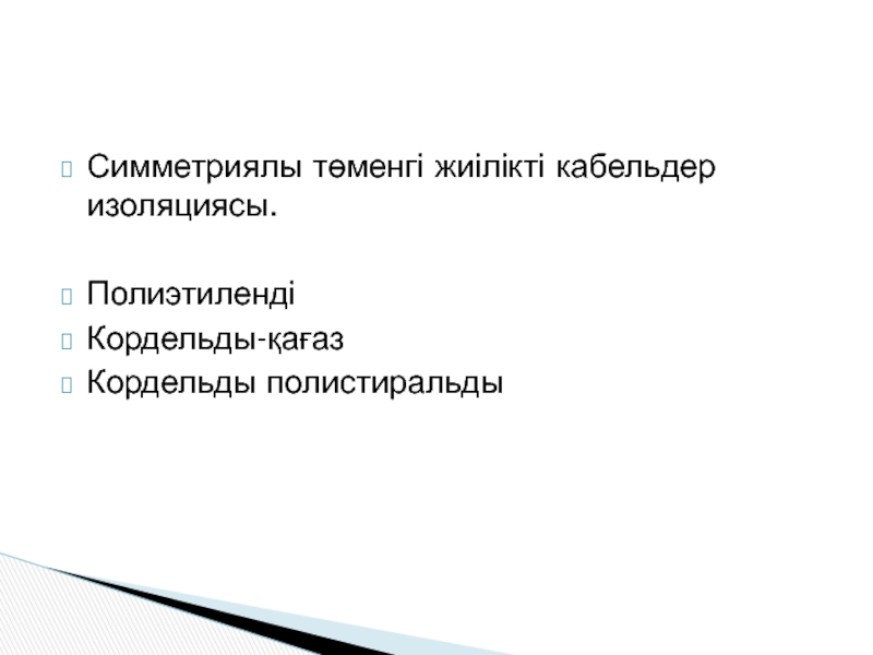 Слайд 10Симметриялы төменгі жиілікті кабельдер изоляциясы.