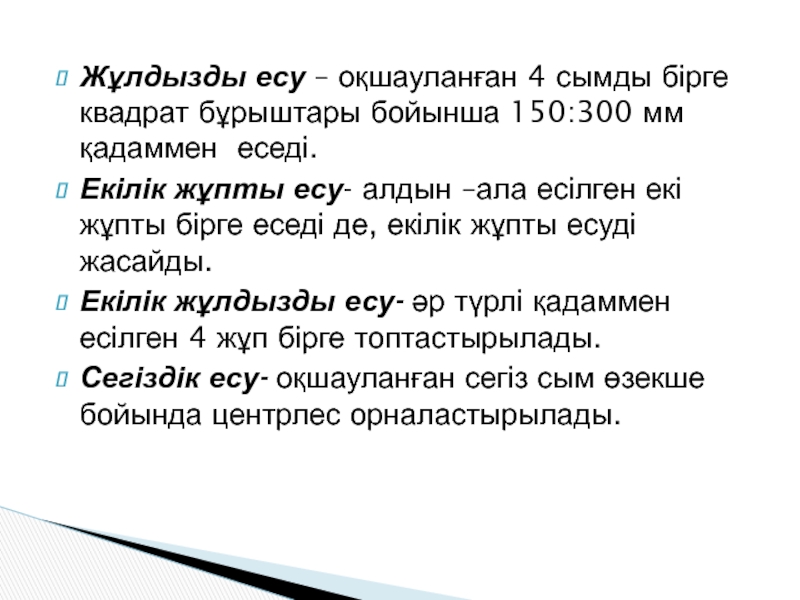 Екілік жұлдызды есу- әр түрлі қадаммен есілген 4 жұп бірге топтастырылады.