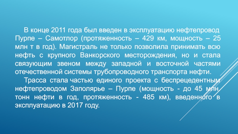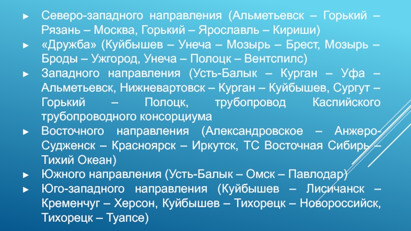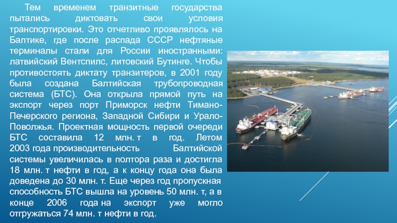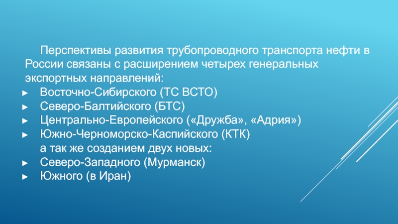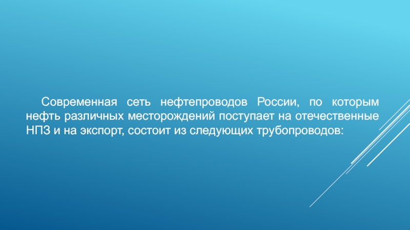 Слайд 64Перспективы развития трубопроводного транспорта нефти в России связаны с расширением