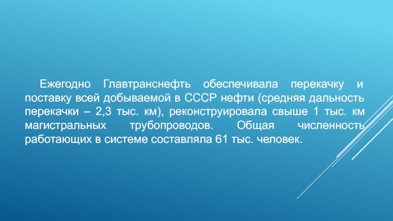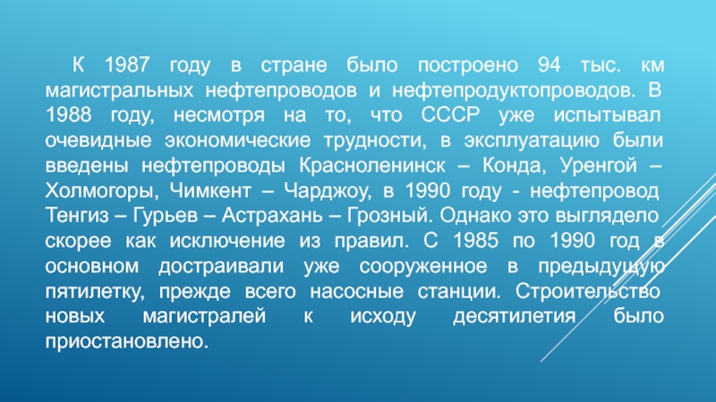 Слайд 29К 1970-м годам по 37,4 тыс. км магистралей ежегодно перекачивалось