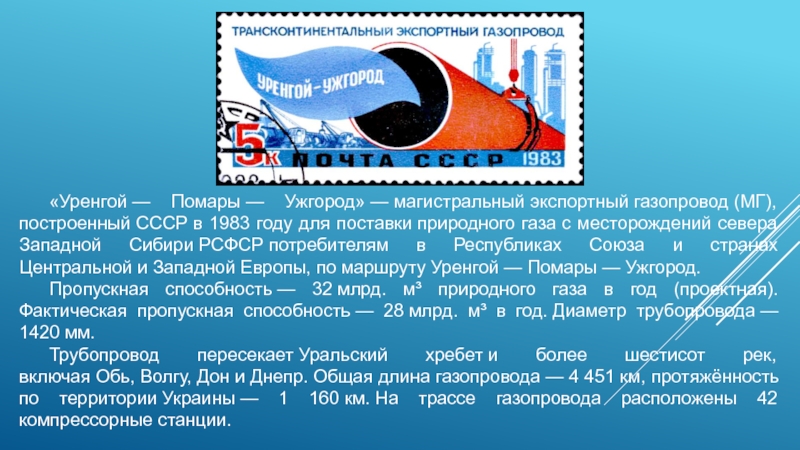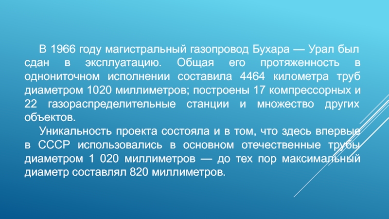 Слайд 28В 1966 году магистральный газопровод Бухара — Урал был сдан